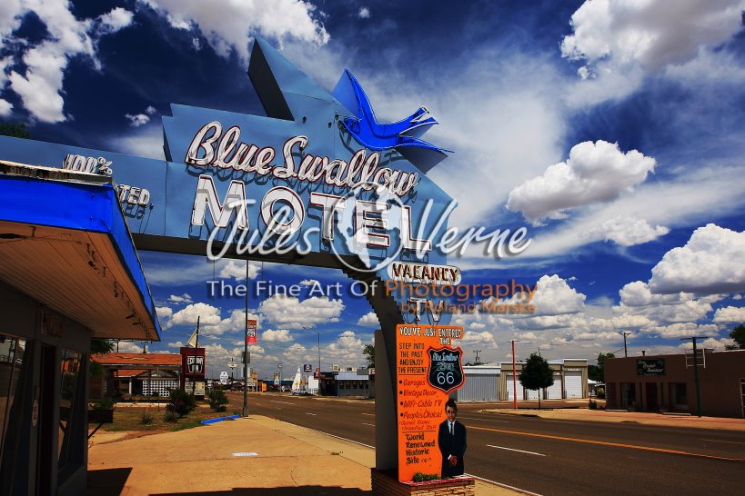 – die Route 66, auf der Motherroad USA von Chicago nach Los Angeles durch Illinois, Missouri, Kansas, Oklahoma, Texas, New Mexico, Arizona und Kalifornien